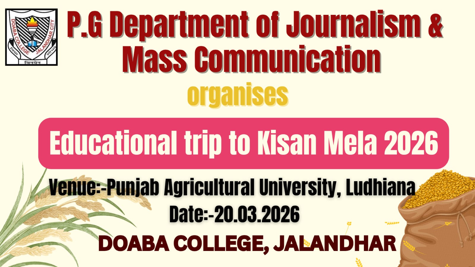 M.Sc.(CS), M.Sc(IT), M.Sc(Mathematics), M.Com, MAJMC, MTM, M.A(English), M.A(Punjabi), M.A(Political Science), M.A(Economics)